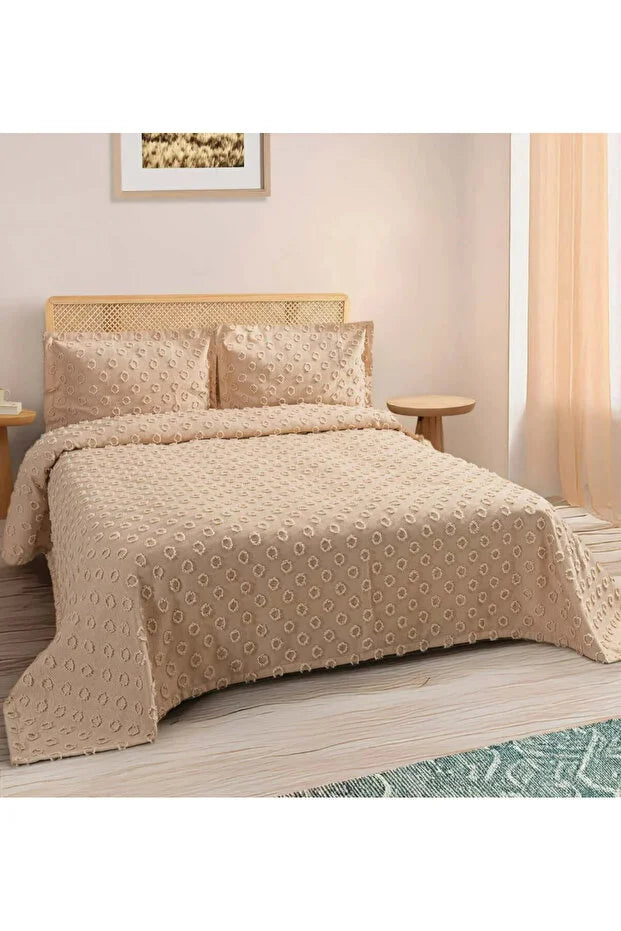 Point Çift Kişilik 3 Parça Pike Takımı - Krem