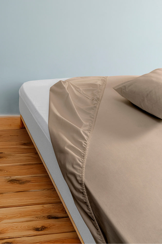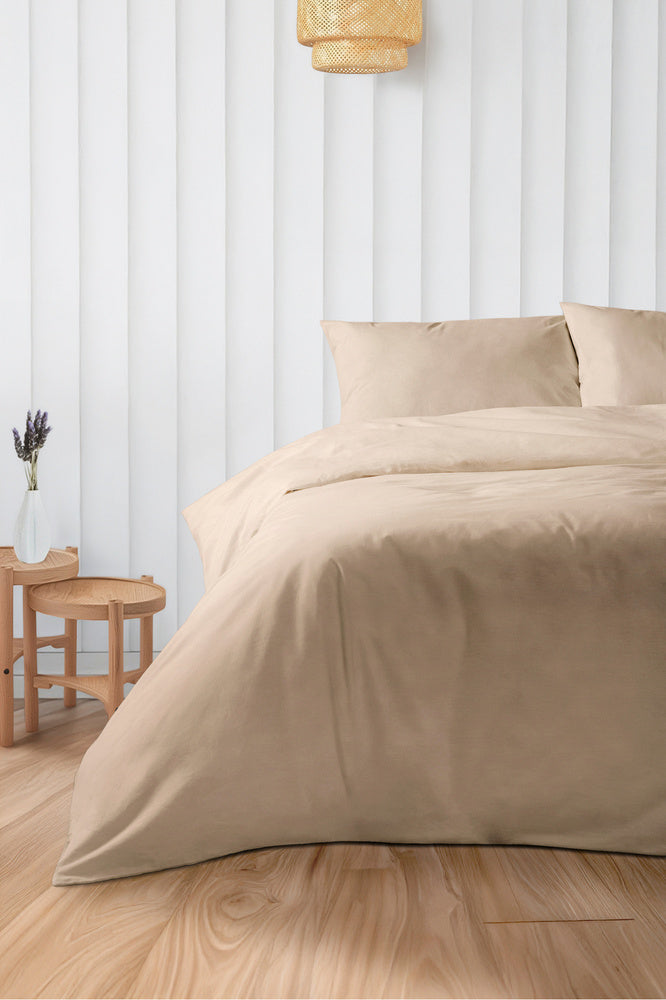 Velora %100 Pamuk Çift Kişilik Lastikli Çarşaflı Nevresim Seti 200 x 220 - Bej / 200 x 220